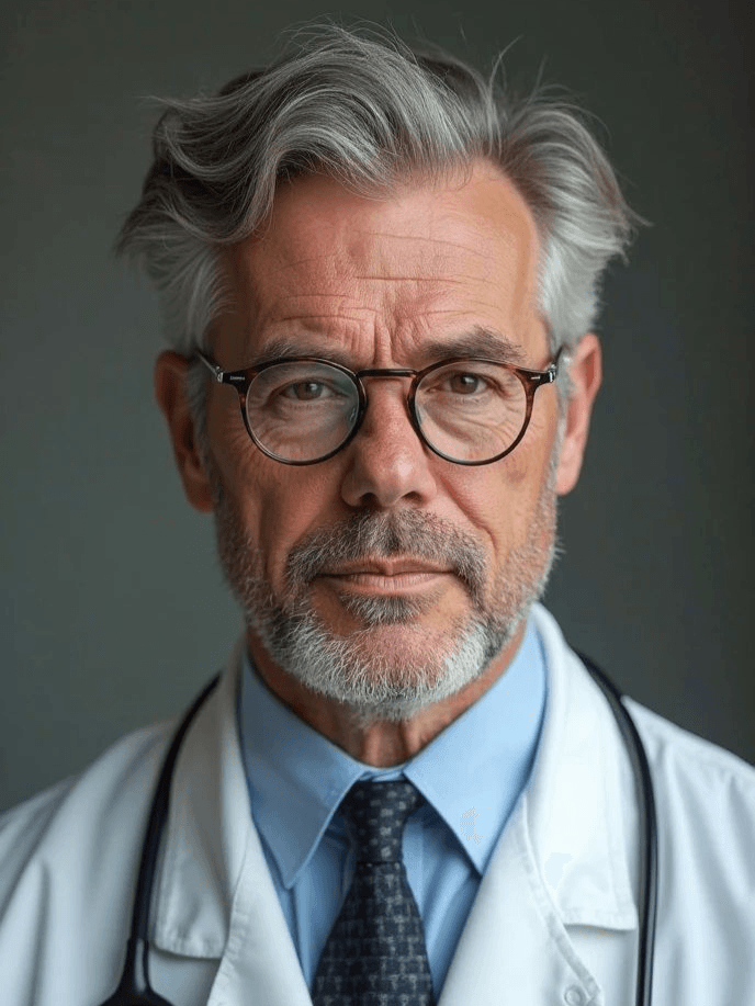 A professional and trustworthy male virtual persona designed to transmit authority, care, and intellectual clarity. His visual presence evokes scientific rigor combined with human warmth, making him ideal for educational narratives related to health, performance optimization, longevity awareness, and evidence-based lifestyle guidance.
