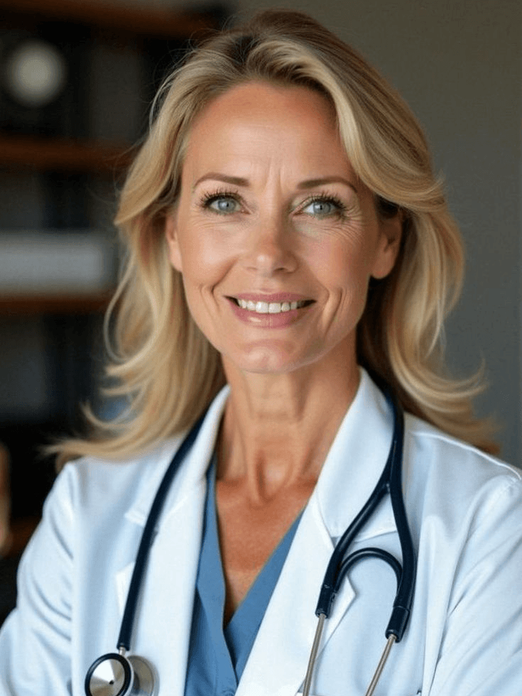 A professional and approachable female virtual persona designed to convey trust, care, and balanced expertise. Her presence communicates emotional intelligence combined with scientific credibility, making her ideal for narratives related to wellbeing, healthy aging, preventive lifestyle guidance, and educational content focused on sustainable personal transformation.